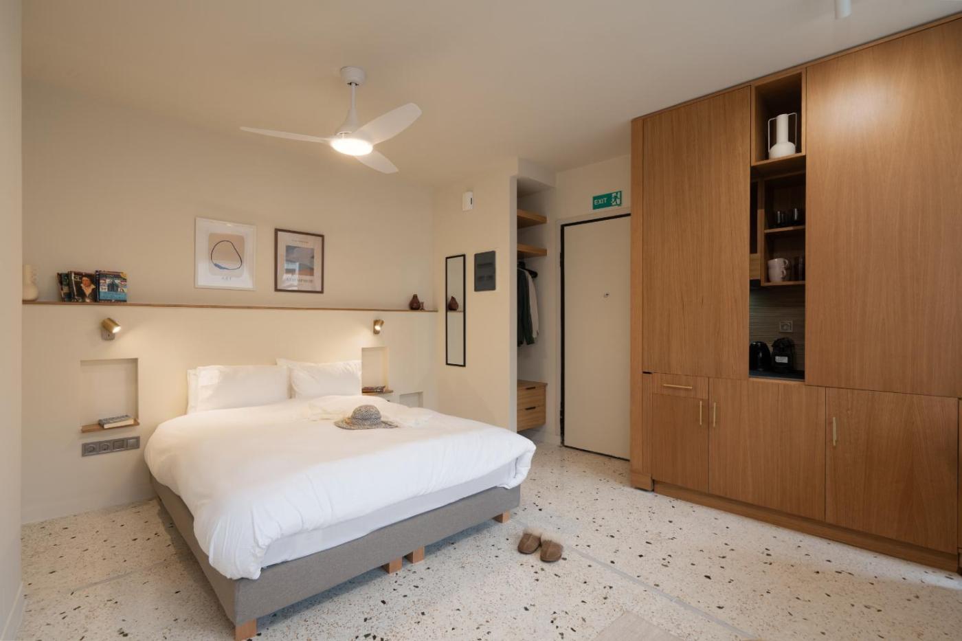 Studio Apartment. The air-conditioned apartment has 1 bedroom and 1 bathroom with a shower and a hairdryer. The well-fitted kitchen features a stovetop, a refrigerator, kitchenware and a microwave. Boasting a terrace with city views, this apartment also features a washing machine and a flat-screen TV. The unit has 1 bed.