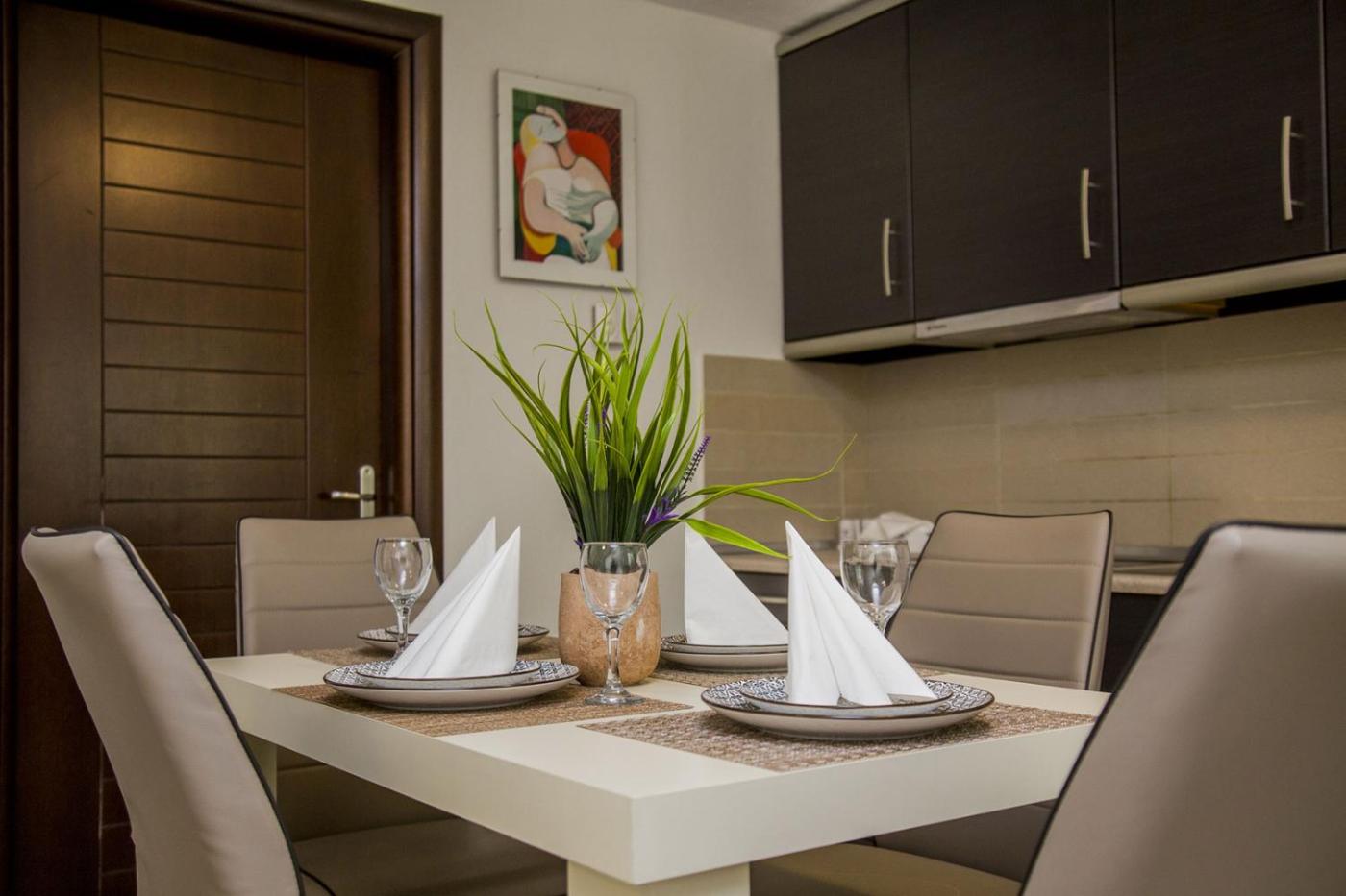 Each unit has a terrace, a fully equipped kitchen with an oven, a dining area and a seating area with a flat-screen TV, while the private bathroom includes a shower and free toiletries. At the apartment complex, every unit is equipped with bed linen and towels.
