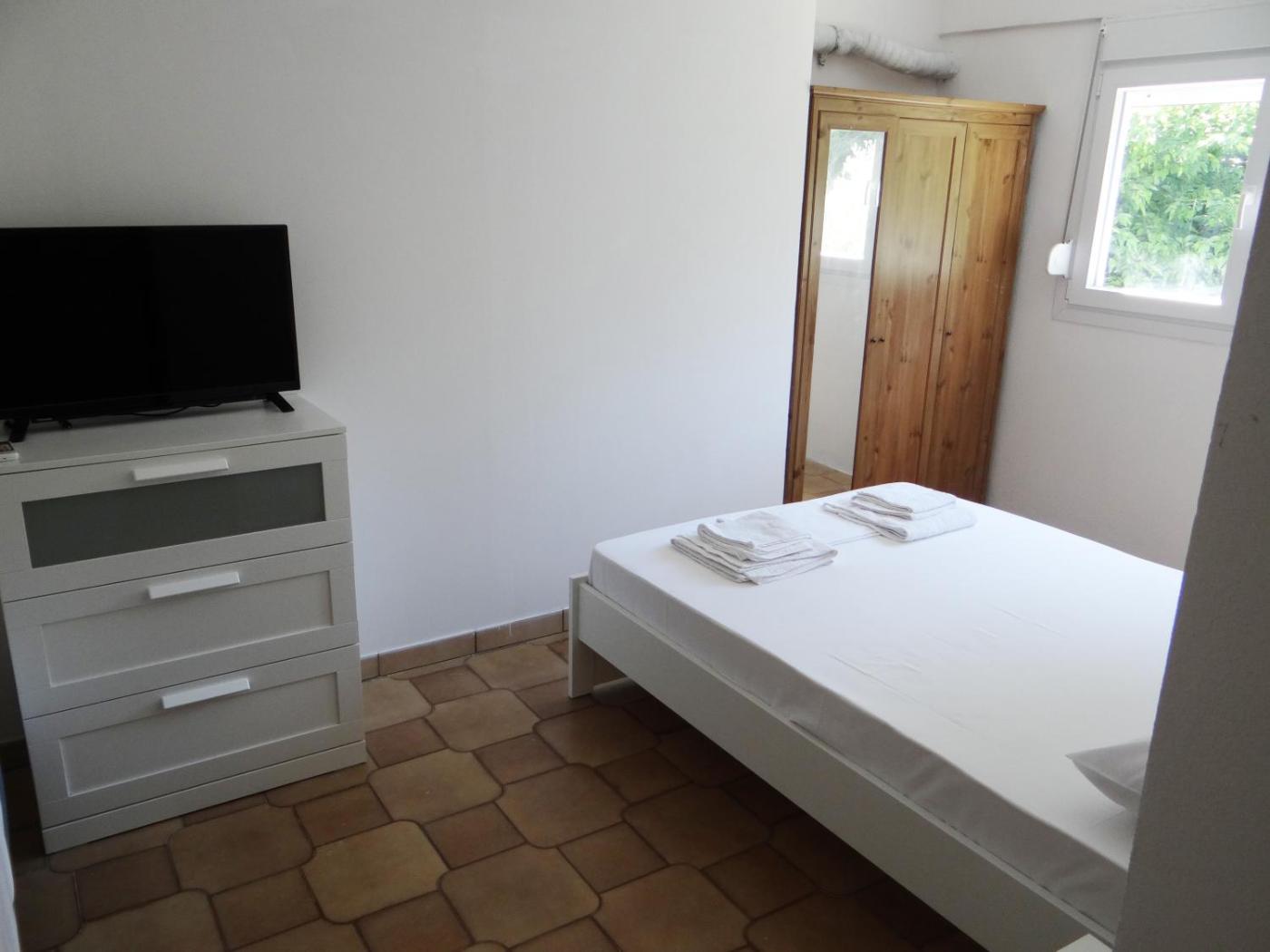One-Bedroom Apartment. Featuring a private entrance, this air-conditioned apartment comprises a kitchenette, 1 bedroom and 1 bathroom with a walk-in shower and a hairdryer. The well-fitted kitchenette features a stovetop, a refrigerator, kitchenware and a toaster. Boasting a terrace with garden views, this apartment also provides a coffee machine and a flat-screen TV with streaming services. The unit offers 2 beds.